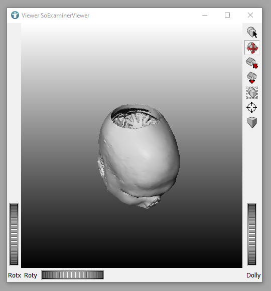The SoExaminerViewer now shows the head as a three-dimensional rendering.