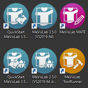 Right after installing MeVisLab, you will find some new icons on your desktop (if selected during setup).