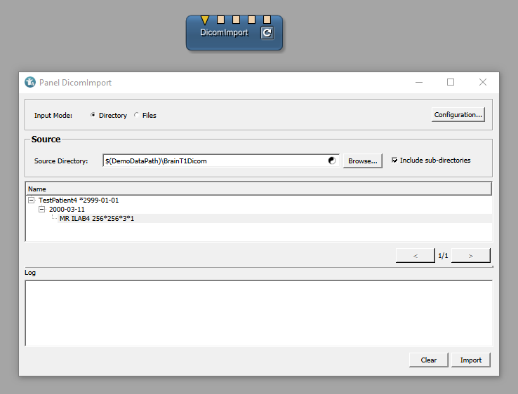 ImageLoad is able to import DICOM data, a much better way is to use one of the specialized modules for DICOM images, such as DicomImport.The DicomImport module allows defining a directory containing DICOM files to import as well as a list of files that can be dropped onto the UI and imported. After import, the volumes are shown in a patient tree providing the following patient, study, series, and volume information (depending on the availability in the DICOM file(s)):
