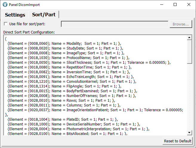 The DicomImport module generates volumes based on the Dicom Processor Library (DPL) that allows defining sorting and partitioning options.