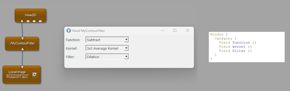 An example can be found in chapter Basic Mechanics of MeVisLab (Example: Building a Contour Filter).