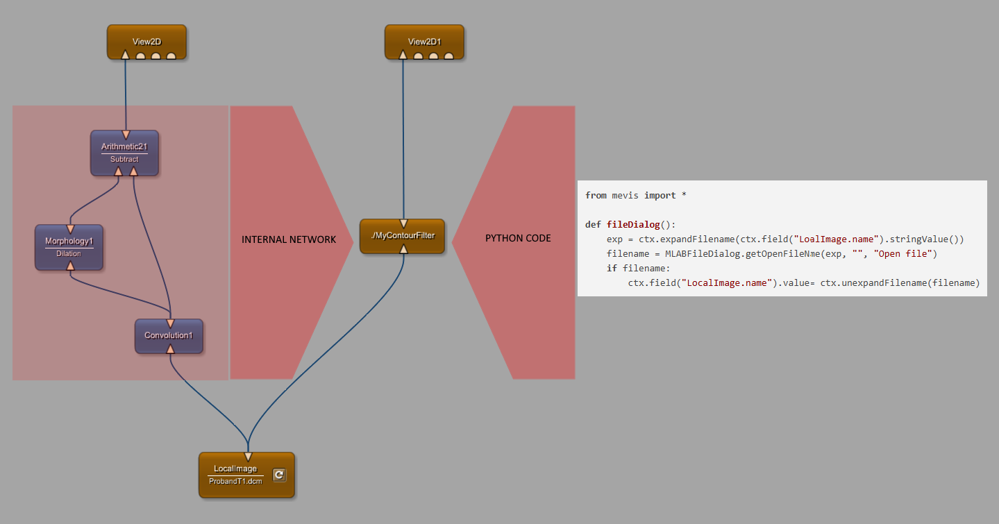 - Macro modules may contain an internal network to encapsulate this functionality or Python code to implement your own functionalities to MeVisLab.