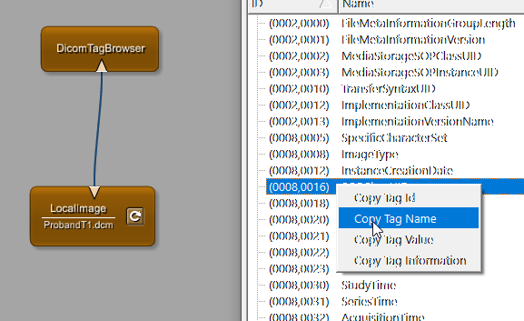 We want to see the name of the DICOM tag we selected in the DicomTagBrowser module. You can access the values the following way: