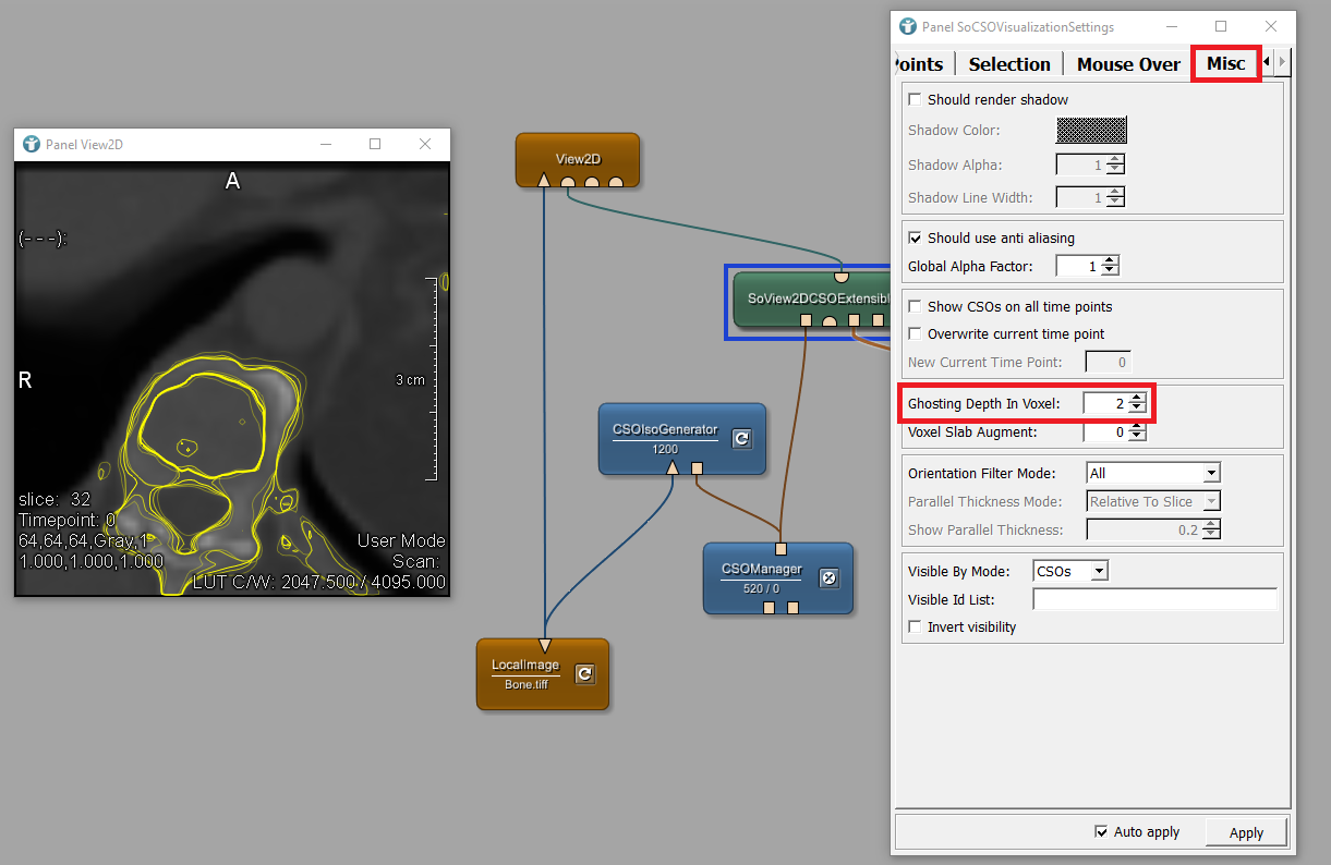 CSOIsoGeneratorenables automatic CSO generation based on an isovalue.- Ghosting allows to display CSOs of previous and following slices.