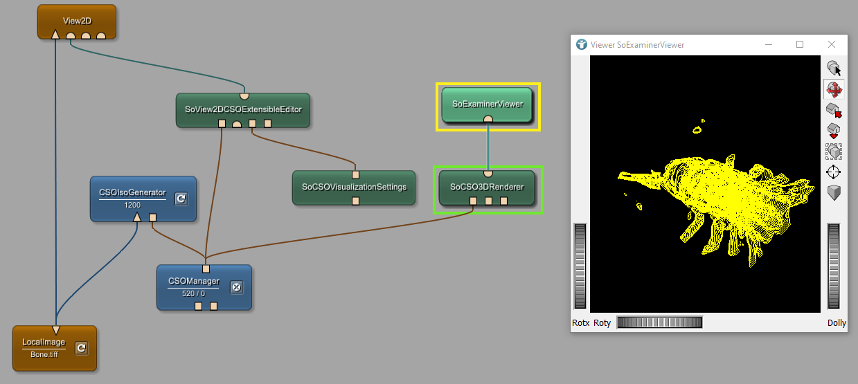 add the modules SoCSO3DRenderer and SoExaminerViewer to your network
