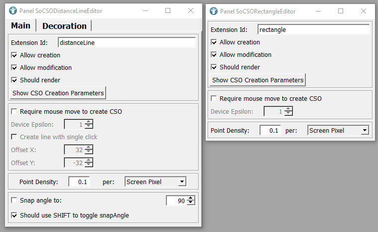 If you now draw new CSOs, you will notice that you still always create distance lines. Open the panel of the SoView2DCSOExtensibleEditor. You can see that the SoCSODistanceLineEditor.