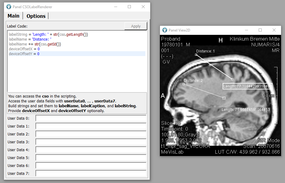 We now want to customize the details to be shown for each distance line. Open the panel of the CSOLabelRenderer. You can see the two parameters CSOManager. You can do this, but we are not defining a name for each contour in this example.