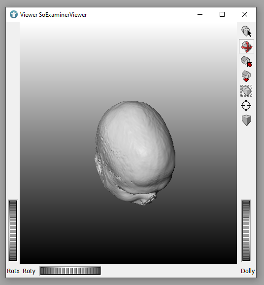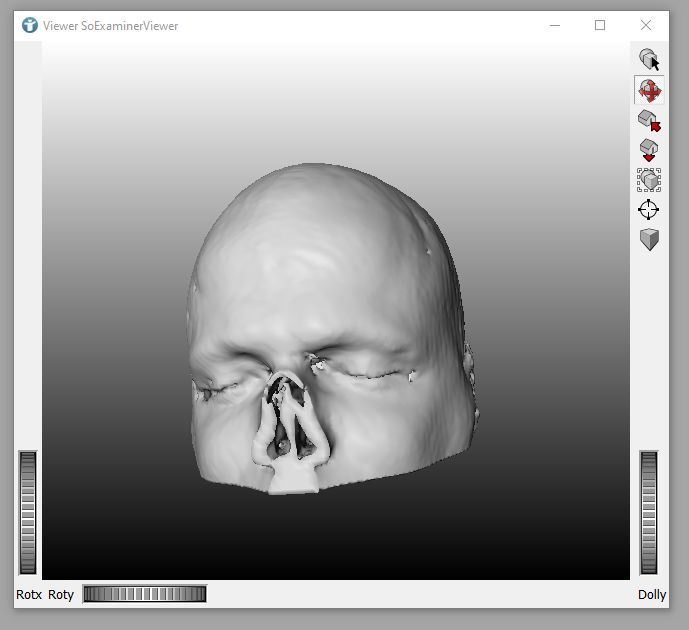 The SoExaminerViewer now shows the head as a three-dimensional rendering.