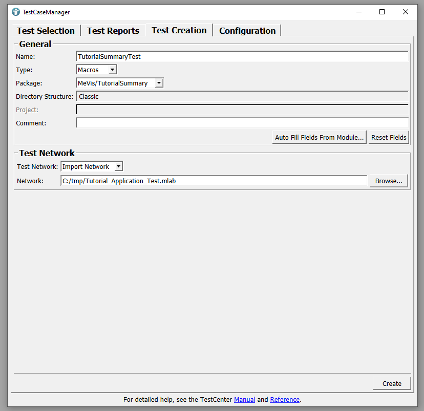 . On the tab Test Creation, define a name of your test case, for example, TutorialSummaryTest. Select