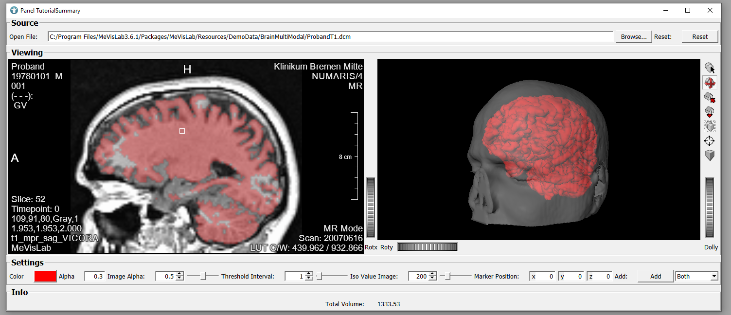 Back in MeVisLab IDE, your user interface should now provide the possibility to define an alpha value of the overlay. Changes are applied automatically because you reused the field of the SoView2DOverlay module directly.