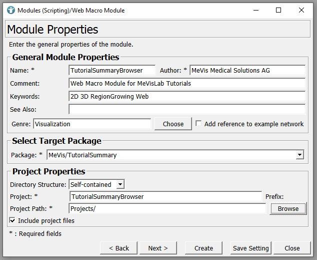 Open the internal network of your previously created macro module from Step 2. Select all and copy to your internal network of the TutorialSummaryBrowser module. Save the internal network and close the tab in MeVisLab.