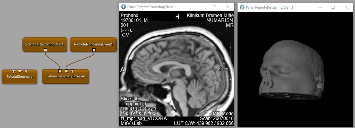 If you want to inspect the internal state of the modules and your internal network, open the console of your browser and enter MLAB.GUI.Application.module(‘TutorialSummaryBrowser’).showIDE(). MeVisLab opens and you can change your internal network while all modifications are applied on the website on-the-fly.
