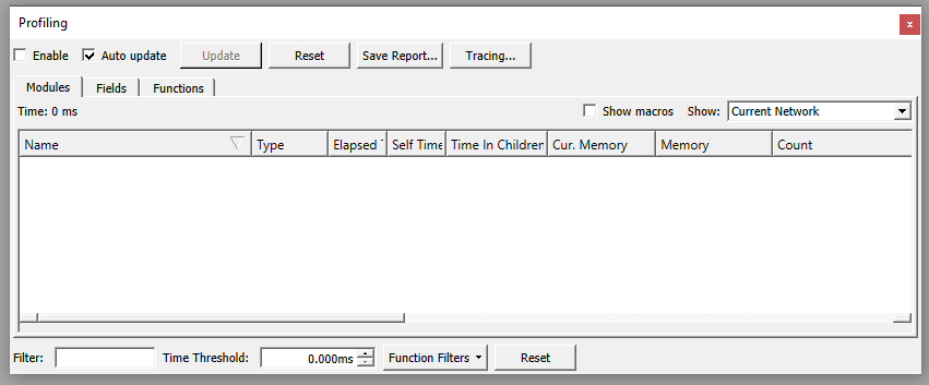 With enabled profiling, your currently opened network will be inspected and the CPU and memory usage and many more details of each module and function are logged.