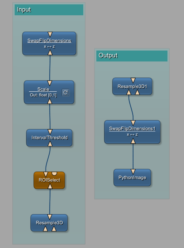 If you now open the internal network of your macro module, you can see that the input image is connected to the input of the Resample3D module.