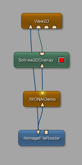Add a SoView2DOverlay and a View2D module and connect them to your local macro module MONAIDemo.