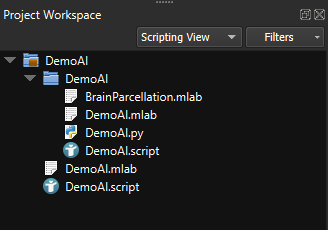 the Project Workspace and add a new file DemoAI.py to your project. The workspace now contains an empty Python file.