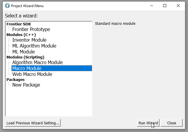 Run Project Wizard