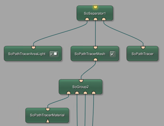 Selecting the SoSeparator output already shows a preview of the same scene rendered via path tracing.