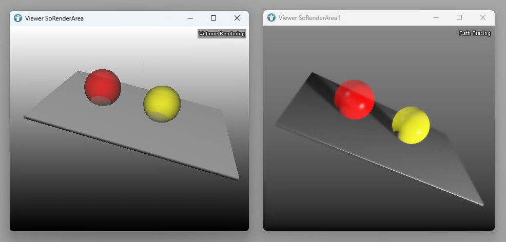 SoPerspectiveCameracan be used for multiple viewers to synchronize camera position. - Path tracing produces beautiful, photorealistic renderings but can be computationally expensive.