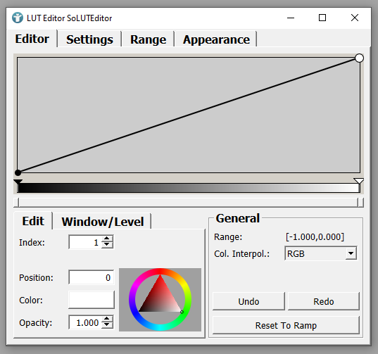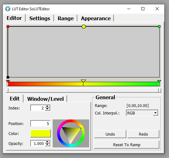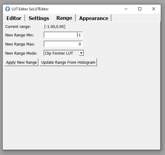 Open the Panel of the SoLUTEditor and select tab Range. Define