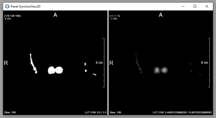 Open the output of the GraphToVolume module and inspect the images in Output Inspector. You will see that the voxel value of the black background is defined as -1 while the vessel tree is defined as 0.