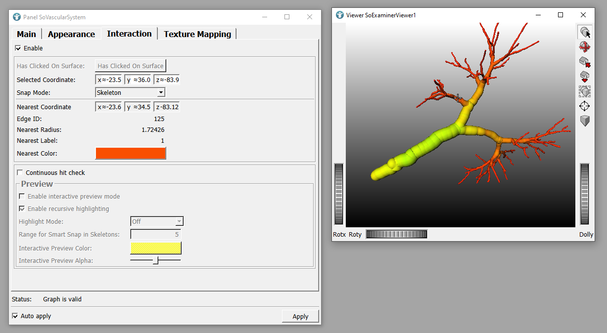 Open the Interaction tab of the SoVascularSystem module. In SoExaminerViewer module, change to Pick Mode and click