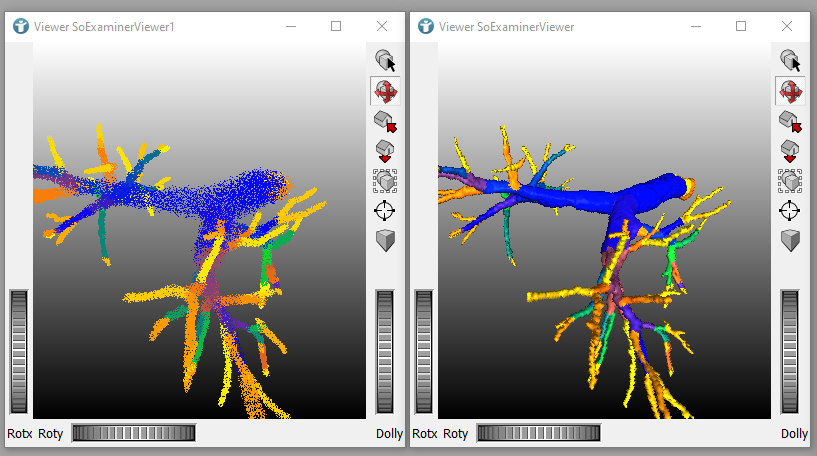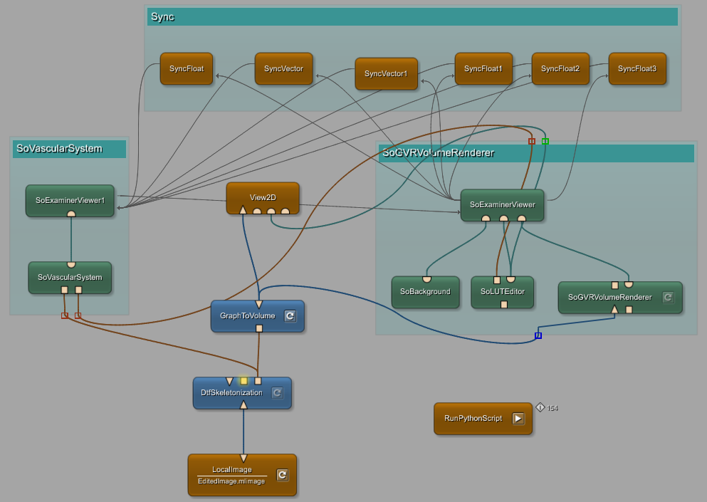 The SoVascularSystem module is optimized for rendering vascular structures. In contrast to the SoGVRVolumeRenderer module, it allows to render the surface, the skeleton or points of the structure in an Open Inventor scene graph. Interactions with edges of the graph are also already implemented.